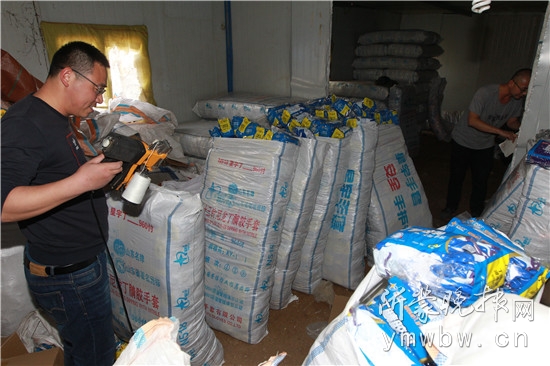 3月30日,兰山公安分局经侦大队二中队民警经过侦查,在临沂北郊一农家院里打掉了一个造假窝点,查缴10万余副假手套。这些假手套一旦流入市场,会严重危害施工工人的安全。