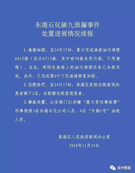 【事故】福建东港石化碳九泄漏事件处置情况续报:刑拘7人