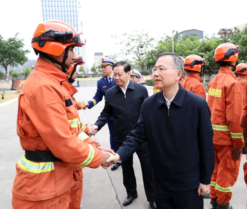 4月3日,应急管理部党组书记、消防救援总监黄明,四川省委书记彭清华前往四川森林消防总队凉山支队西昌大队,看望慰问参加木里“3?30”森林大火扑火作战任务的森林消防指战员,并与参战指战员进行座谈。