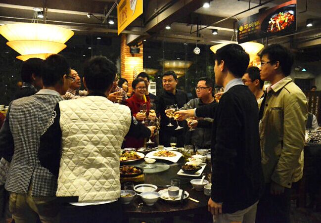 晚宴期间,大家相互敬酒、交流感情、觥筹交错、推杯换盏,开心品味佳肴。现场其乐融融,一团喜气洋洋的新年气象。