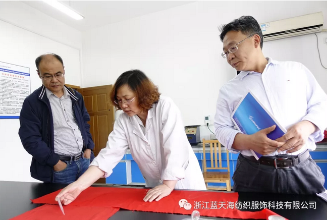 在参观完公司研发中心,检测中心,恒温恒湿室及产品档案室后,浙江纺织工程学会专家组一行领导对公司的检测包括公司“蓝翔”面料的功能性以及档案室的管理给与肯定。