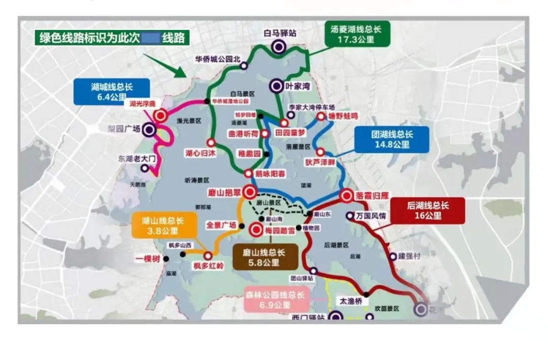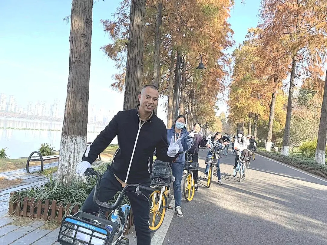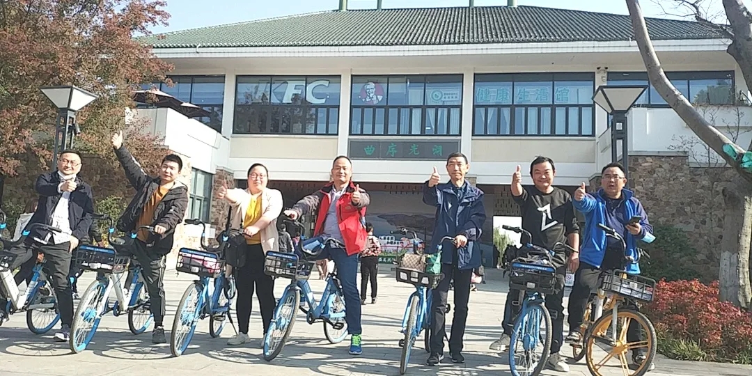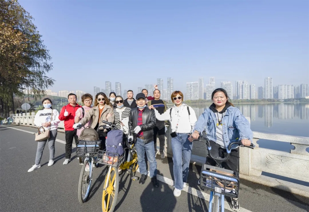 此次健康行活动路线为:自梨园广场的湖光序曲出发,沿东湖绿道,途径:长堤衫影、湖心归沐、鹅咏阳春、曲港听荷、鹄梦回塘、叶家湾、白马洲头、华侨城公园北等地,最终回到集合点,骑行全程约18公里,步行选其中的5公里。上午9点30分,大家到达位于梨园广场的东湖绿道入口,集体合影留念。健康行活动由公司总经理张金敏发令启动,大家沿着风光秀美、空气清新的东湖边前行,职工们一改平日里紧张、繁重的工作节奏,全程精神昂扬,一路欢声笑语。