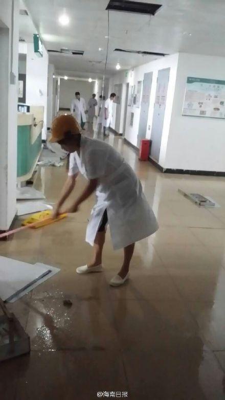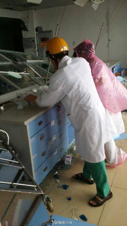 今年第21号台风莎莉嘉吹袭海南,在定安县人民医院8楼骨科,护士在被台风吹得满地玻璃、天花板摇摇欲坠的房间里,为病人找药。而在海口市人民医院,护师陈爱梅为赶到医院治疗病人而自己摔伤成脑震荡;在同济文昌医院驻重兴卫生院,医生吴燕玉冒雨去接诊“台风宝宝”,而她自己也是名孕妇。医护工作者们辛苦了!