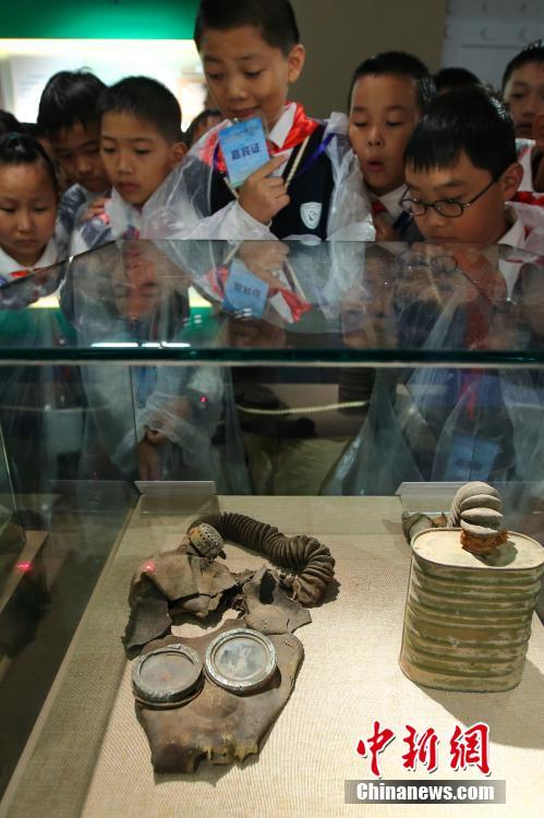 10月20日,由外交部处理日本遗弃在华化学武器问题办公室和国防部处理日本遗弃化学武器办公室联合主办,侵华日军南京大屠杀遇难同胞纪念馆承办,江苏省人民政府外事办公室协办的《还人民一片净土——处理日本遗弃在华化学武器工作纪实展》在南京开幕。本次展览共展示了700多幅图片、70余件文物、300多枚复制化学弹模型,并通过幻影呈像、场景复原等多种现代化手段,全面揭露了侵华日军使用化学武器的罪行,展现了参与处理日遗化武工作人员不畏艰险、无私奉献,力争早日还人民一片净土的决心。图为展出的侵华日军用防毒手套(上)、侵华日军用防化鞋(下左)、侵华日军九六式轻防毒面具(下右)。