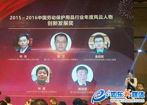 近日,全国劳保行业协会在上海召开表彰大会,全国各省、市、区的业内企业和相关领导出席会议。我县赛立特安全用品公司和公司董事长赵卫分别荣获“2015~2016年度技术创新奖”和“全国劳防行业年度风云人物奖”,是南通地区唯一获此殊荣的企业和个人。