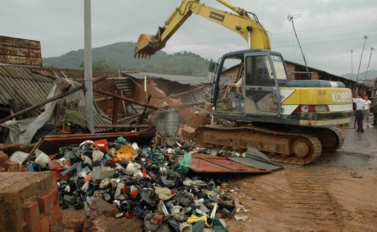 南京海关查证走私废料。王晨晖摄经过充分的前期摸排,南京海关缉私警察于6月21日在扬州、苏州、南京、青岛、上海等地同时开展收网行动,一举破获一起特大洋垃圾走私案,抓获犯罪嫌疑人5名。在非法加工厂的生产现场,海关缉私警察发现,大量走私进境的废粉末涂料被随意堆放,因粉末颗粒小而轻,弥散在空气中,对工人们的健康产生很大危害。据了解,废粉末涂料,俗称“废粉”,是粉末涂料生产或喷涂使用过程中产生的废弃涂料、报废涂料。加工过程中,工人们简单将“废粉”过筛分拣,剔除出结块和其他杂质,这些分拣出的杂质、结块一旦随意倾倒,将对周边环境和地下水造成严重污染。通报称,国内中小生产企业往往为谋取非法利益,将回收的、过期的超细颗粒,以及其他不合格的废粉末涂料与同种配方产品的原料混合,用以生产中低档的粉末涂料在国内市场销售,获取利润。根据我国规定的《禁止进口固体废物目录》,“过期的和废弃的涂料”被明确为我国禁止进口的固体废物,此类走私行为触犯刑法,构成走私废物罪。