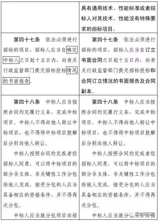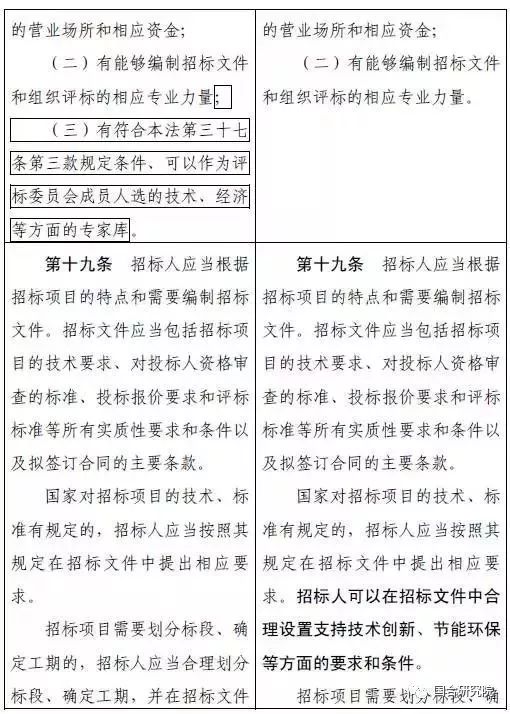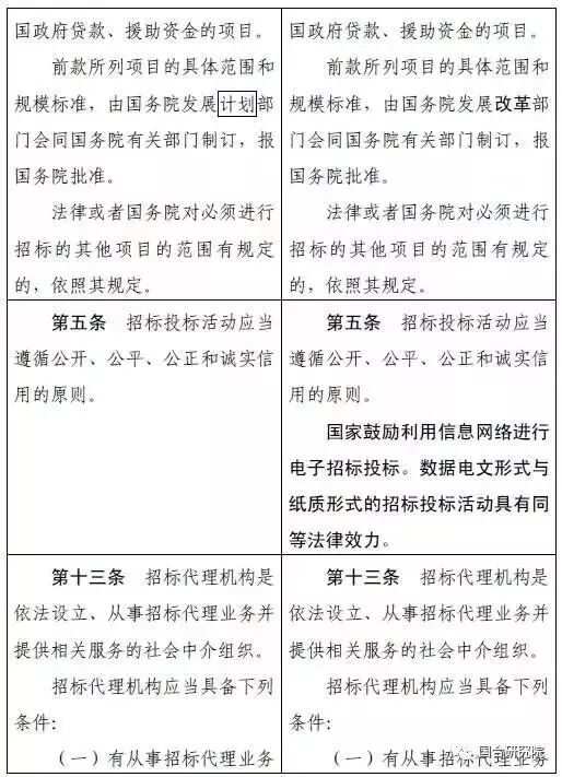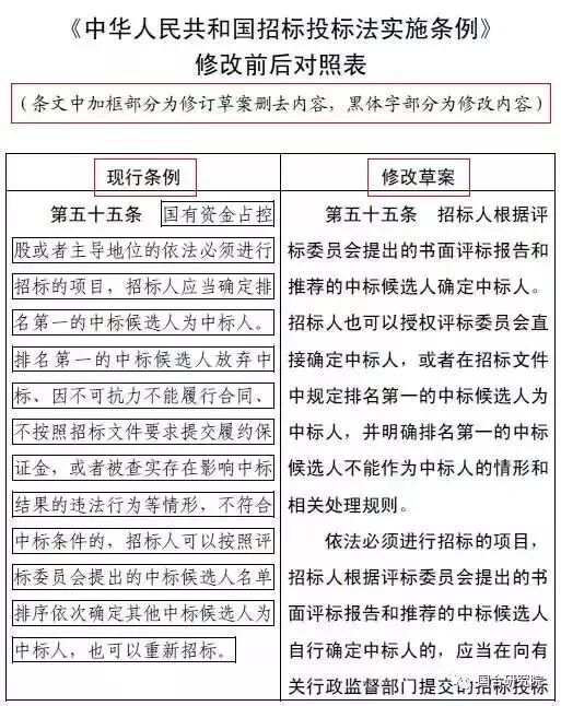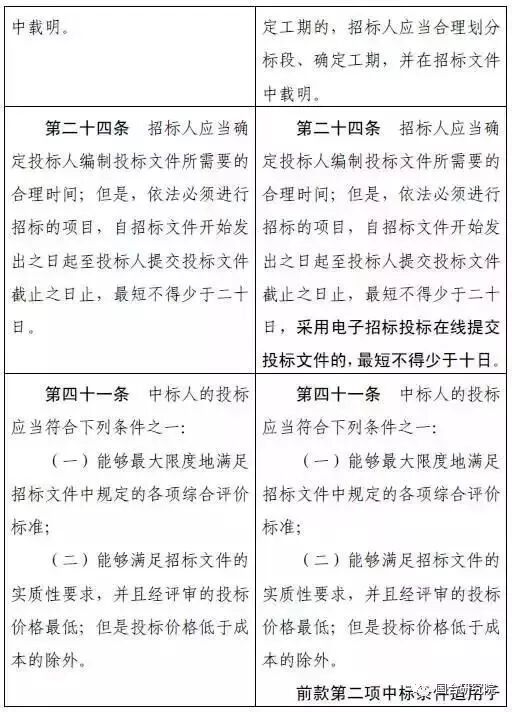 以下附《招投标法》和《招投标实施条例》修改前后对照表完整版
