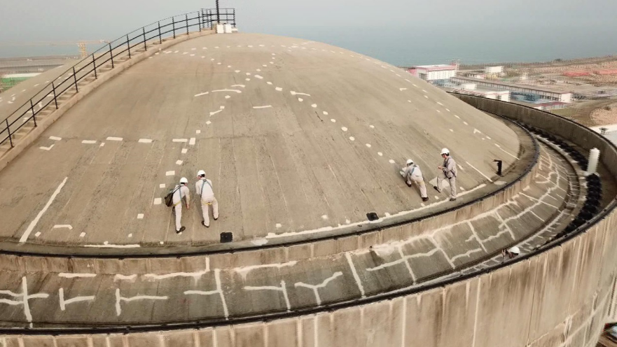 在大亚湾核电一号机组巨大的混凝土安全壳外面,有一个小伙子正在向穹顶攀爬。他叫宋翔,今年31岁,是一名安全壳特性评估主管工程师。