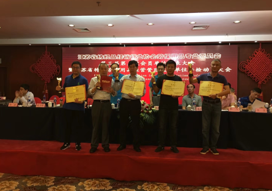 本届劳保用品展示交易会共有54个单位参加,展示交易活动分为上午场和下午场两场,下午场又分为室内场和室外场。展会期间,大会会务组开展专项活动,由会员单位投票推荐参展的品牌、举行首次微信投票评选“第五届江苏省劳保用品展示交易会我喜爱的品牌”活动,在22日下午的大会上,江苏省纺织品经销行业协会会长叶清、副会长孙道国向获得“我喜爱的品牌”10家企业代表颁发荣誉证书和奖杯。获奖企业代表纷纷表示,协会举办的投票活动,不仅扩大了企业品牌的影响力,更提升了企业发展品牌的自信心。